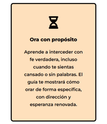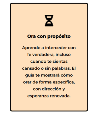 Lo que lo hace diferente es que no se basa en emociones ni fórmulas religiosas, sino en promesas reales de Dios aplicadas a tu día a día, con estructura y dirección espiritual.