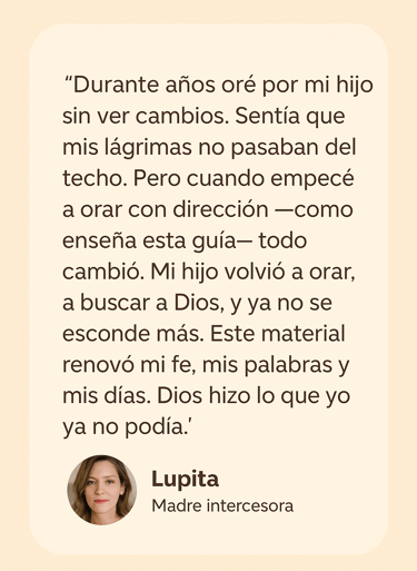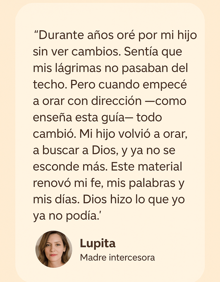 Mientras muchas madres oran sin rumbo, se frustran al no ver resultados y sienten que su fe no es suficiente, este guía te ofrece una ruta clara, sencilla y bíblica para interceder con propósito.
